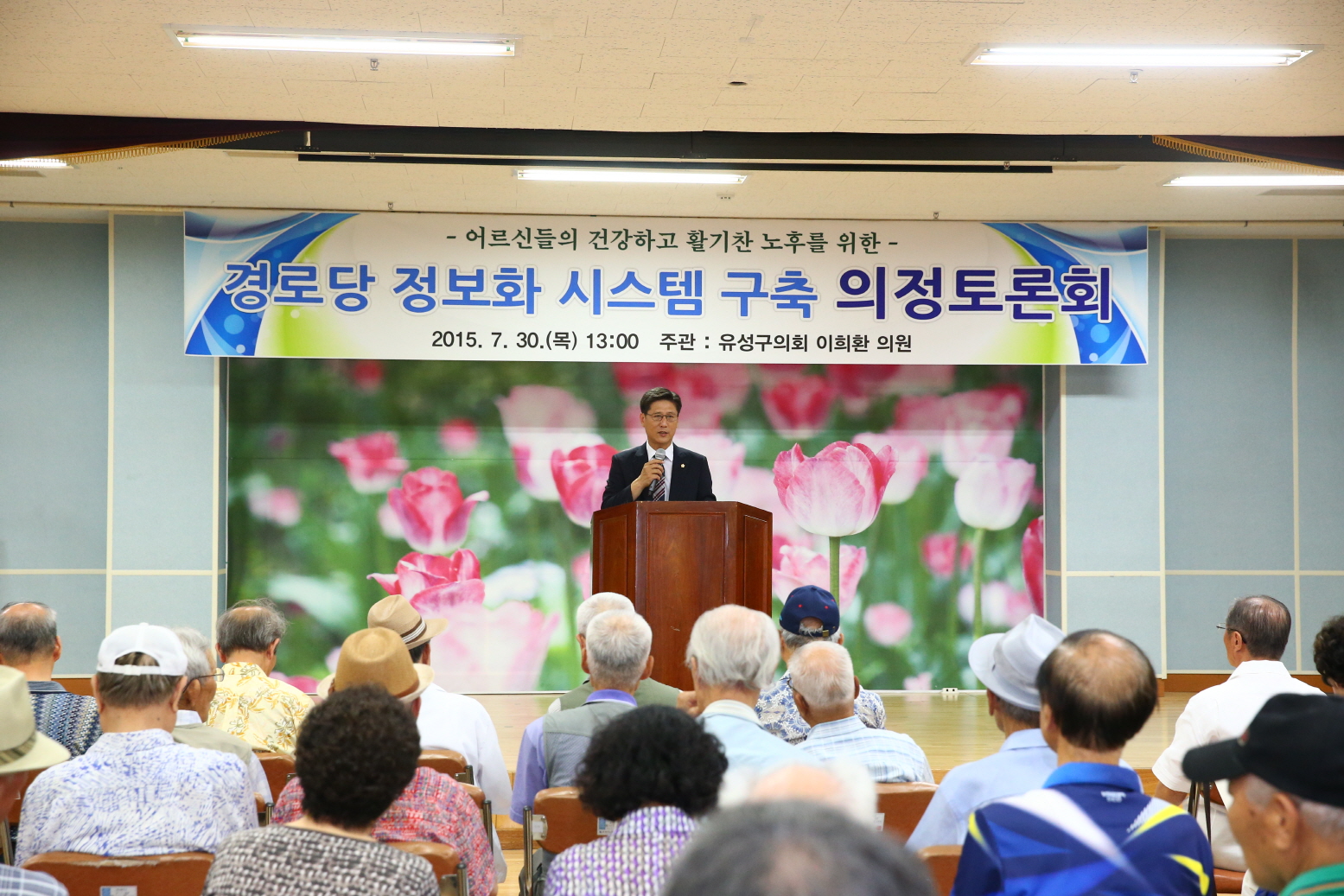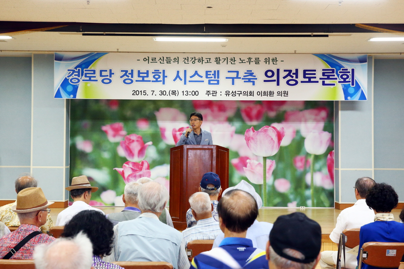 대전광역시 유성구의회 이희환의원이 주최(유성구의회 사회도시위원회 주관)한 ‘경로당 정보화시스템 구축 의정토론회’가 유성구 노인복지관 강당에서 열렸다.