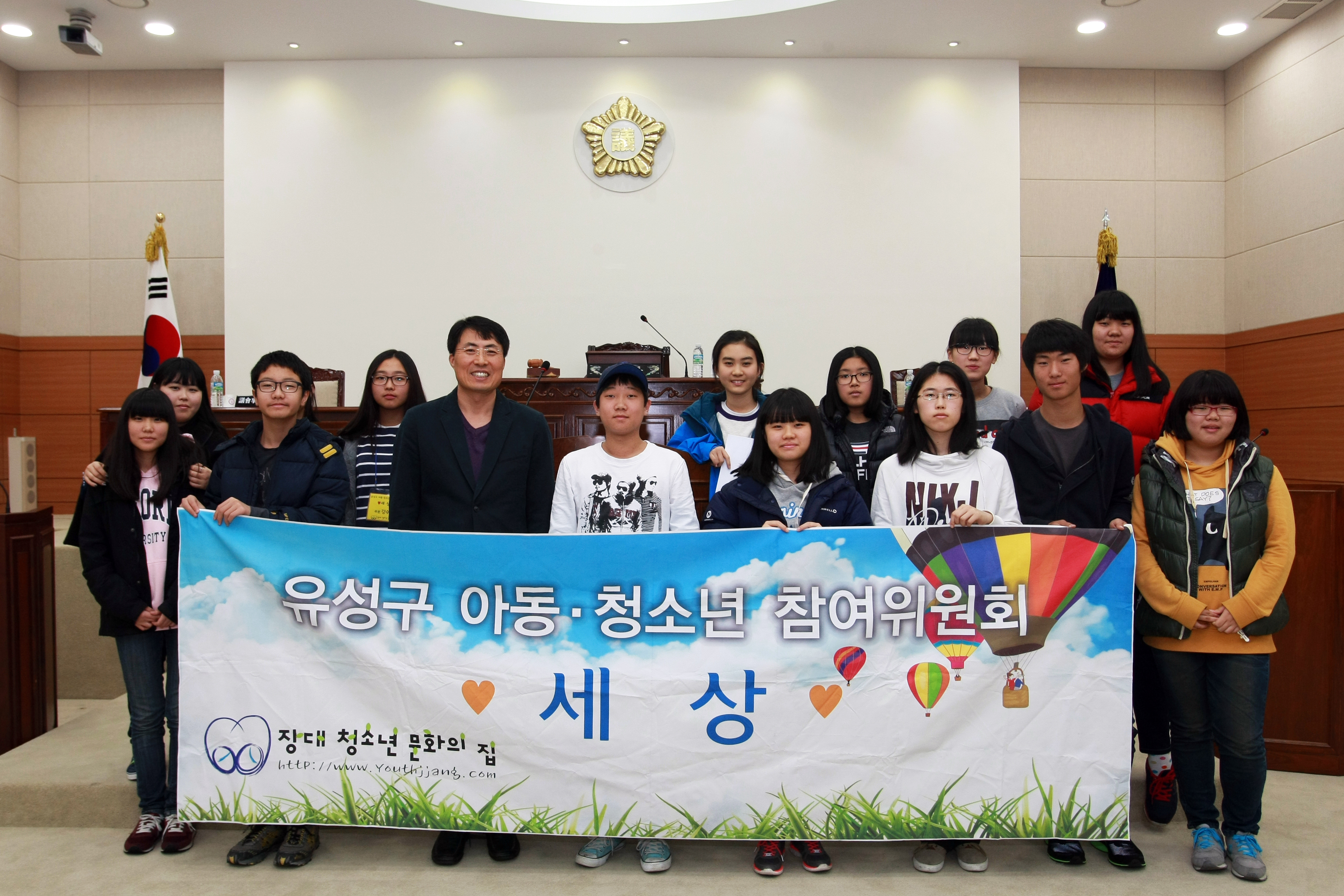 자라나는 청소년들이 밝고 건강하게 자랄수 있도록 다양한 프로그램과 체험학습, 학습지도, 급식지원등을 지원하고 있는 \'장대청소년 문화의집\' 학생들과 선생님들이 유성구의회를 방문해 지방의회의 역할과 기능에 대한 설명을 듣고 모의의사진행을 체험하는 시간을 가졌다.