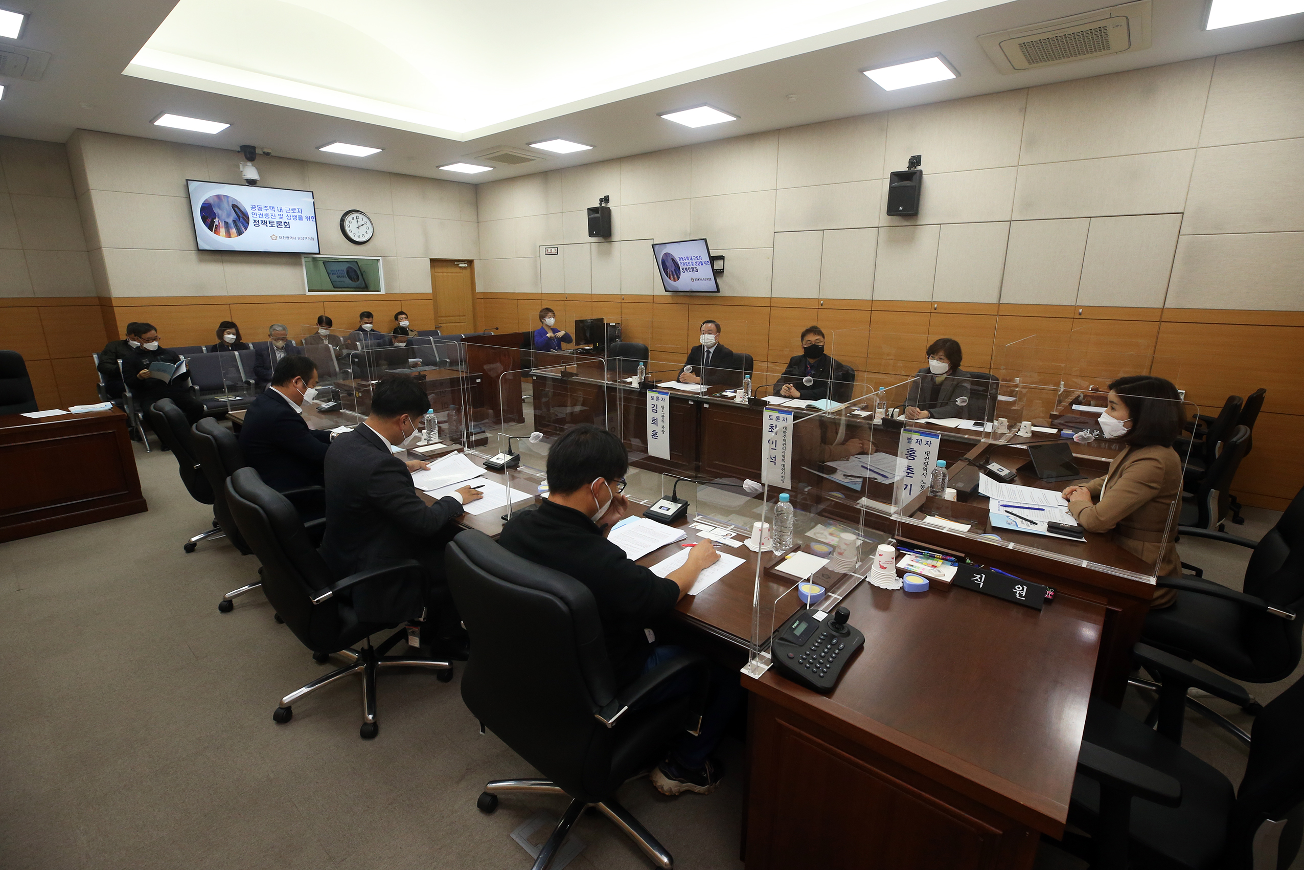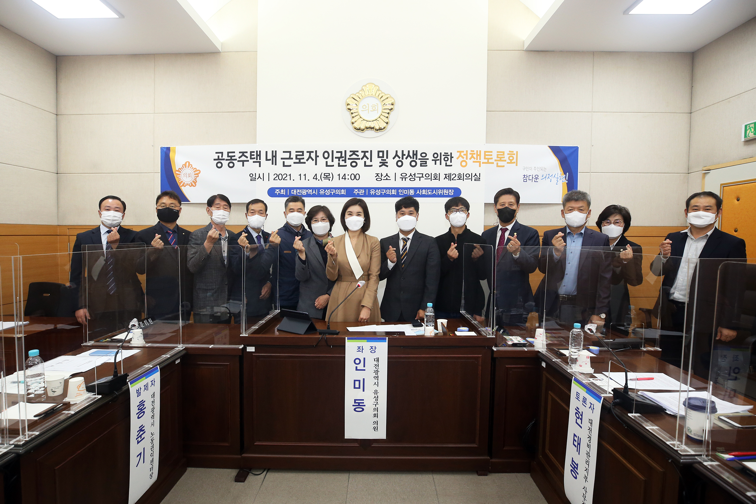 인미동 사회도시위원장이 주관한 ‘공동주택 내 근로자 인권증진을 위한 정책토론회’가 4일 유성구의회 제2회의실에서 열렸다.