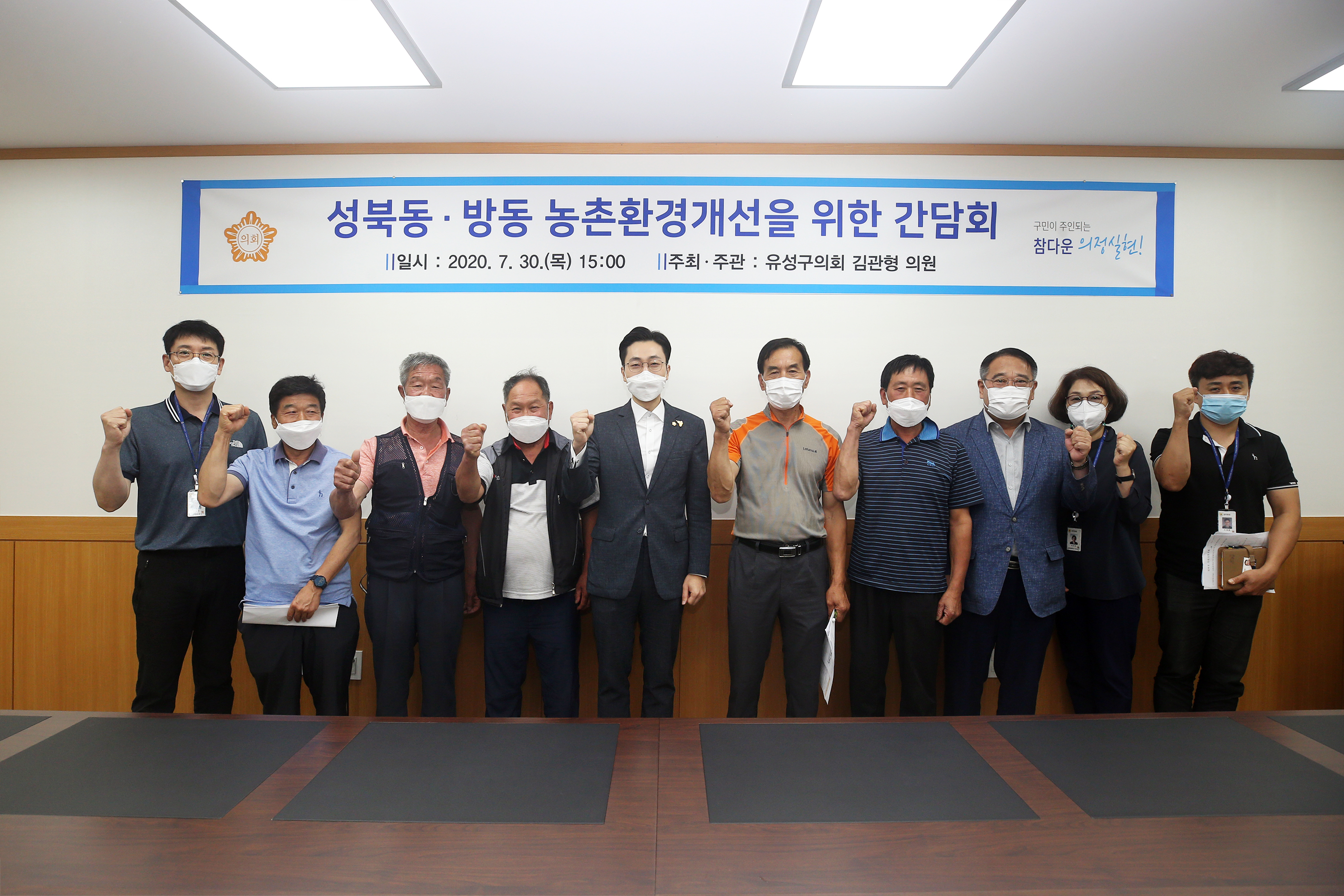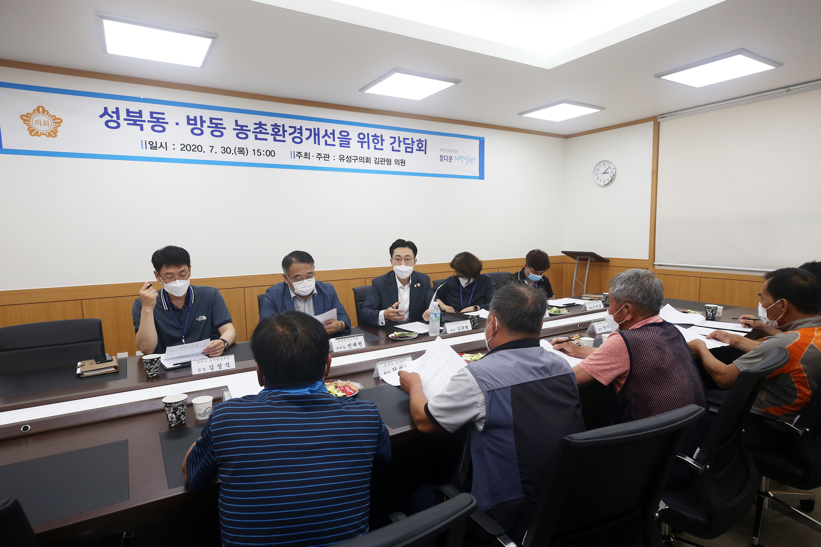 대전광역시 유성구의회 김관형 의원이 의회 간담회실에서 방동저수지 개발사업지역인 성북동, 방동지역의 현안문제를 논의하는 자리를 마련했다.